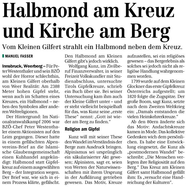INTERRELIGIÖSES GIPFELKREUZ AM GILFERT
