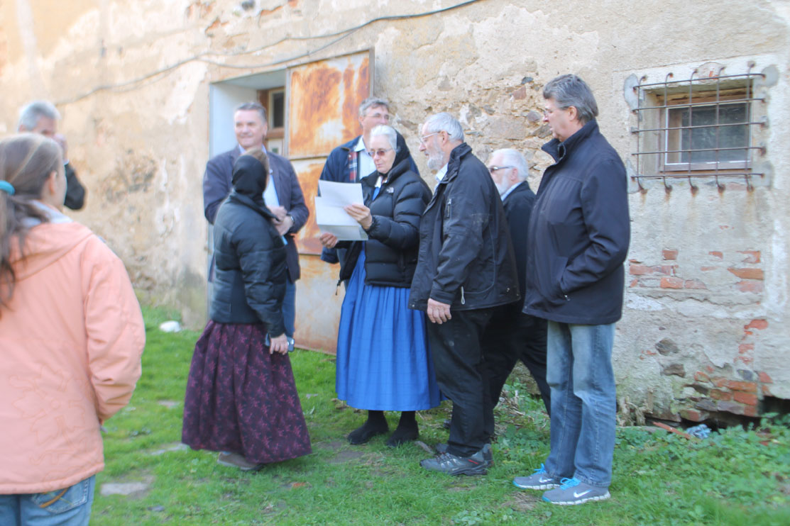 Dvůr Alinkov, Tschechien, Judith Kleinsasser betrachtet begeistert die Fotos vom Perlmutt-Besteck
