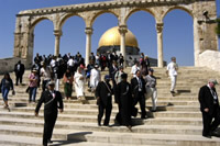 Dann marschierten wir zum Tempelberg, dem Berg Moria, von dem angenommen wird, dass Abraham auf ihm seinen Sohn Isaak opferte, und von dem aus der Prophet Muhammad in den Himmel aufstieg. Das ist eine der drei heiligsten Stätten des Islam. Wieder passierten wir reibungslos die Checkpoints und wurden zur ersten interreligiösen Gruppe, die seit der zweiten Intifada vor die Moschee treten durfte. Die Treffen, die wir am Tag zuvor mit dem Imam und den Schlüsselverantwortlichen der Moschee hatten, ebneten uns den Weg. Imam Bundakji aus Kalifornien half den jüdischen und christlichen Leitern sehr, große Achtung vor dem Islam zu empfinden. Für viele Juden, die ihr ganzes Leben in Jerusalem wohnten, war es das erste Mal, dass sie auf dem Al Aksha Platz stehen konnten. Zum großen Erstaunen der Polizei empfingen uns die islamischen Imams und die Schlüsselverantwortlichen mit viel Liebe und Hochachtung.