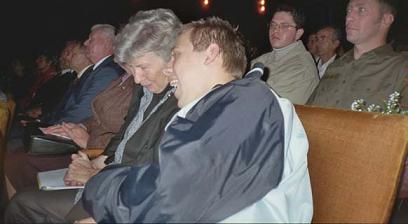 übersetzt. Die Bedenken, dass der Rollstuhl nicht auf das Podium gebracht werden