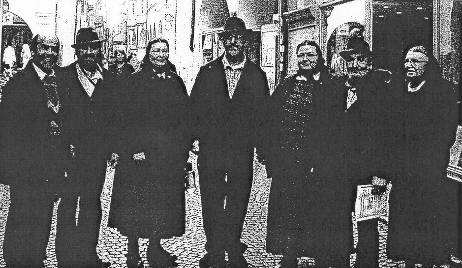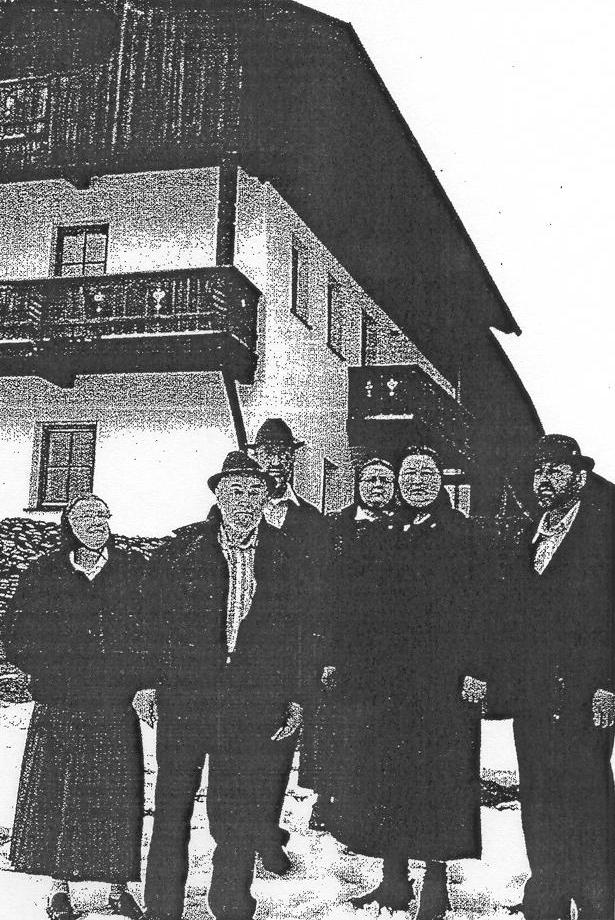 Die Hutterer vor dem Geburtshaus von Jakob Hutter in Moos bei St. Lorenzen und