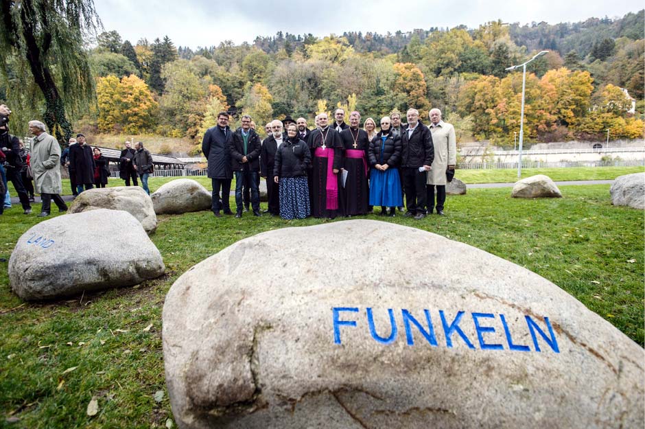 © Thomas Boehm | TT Zwölf Granitfindlinge, die einen Bibelvers formen, erinnern in Innsbruck an die Vertreibung der
